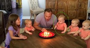 Kijk wat zijn dochtertje doet als papa de kaars uitblaast terwijl...