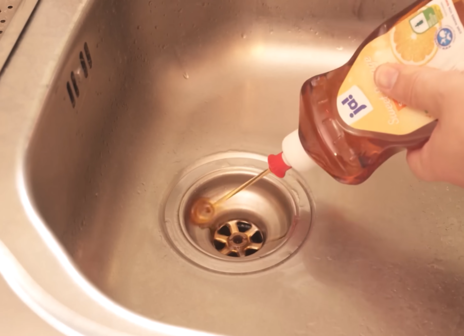 Schenk ongeveer een halve fles afwasmiddel rechtstreeks in de afvoer.