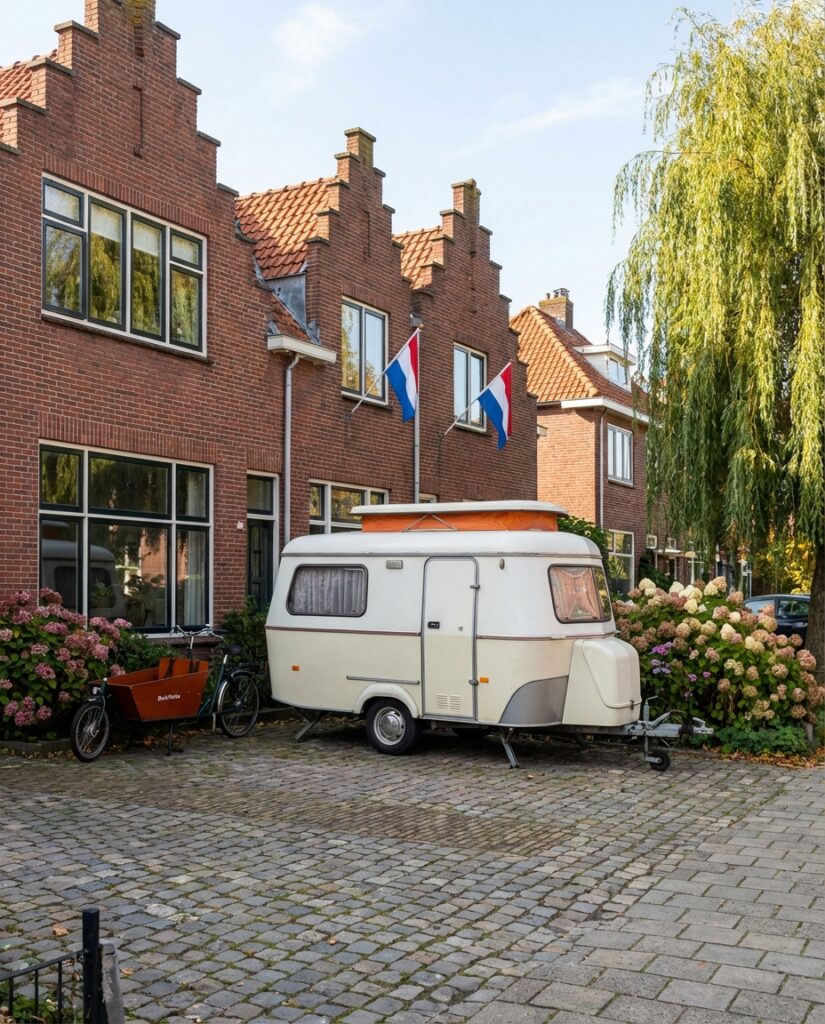 Praat met je buren. Laat weten wanneer je de caravan plaatst en hoe lang hij blijft. Die duidelijkheid scheelt een hoop irritatie. Houd het verder netjes: hou de caravan schoon, laat geen blokken of losse spullen slingeren en belemmer geen zichtlijnen of voetpaden. Zet ‘m zo ver mogelijk op je eigen grond en laat niets over het trottoir of de rijbaan steken.