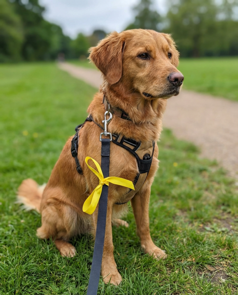 Tot slot: bij blessures of revalidatie is voorzichtigheid belangrijk. Een plotselinge begroeting of een harde snuffel kan te veel zijn. Het gele lintje maakt die kwetsbaarheid in één oogopslag duidelijk.