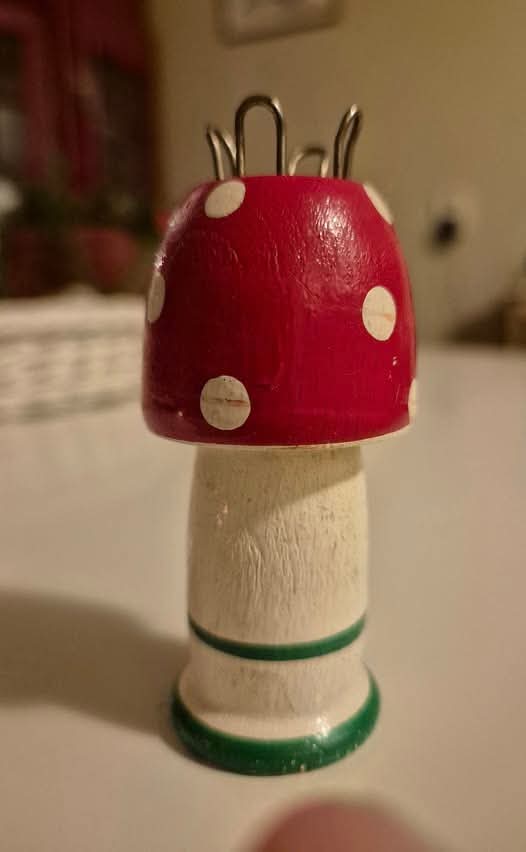 een houten, lege draadklos uit de naaimand