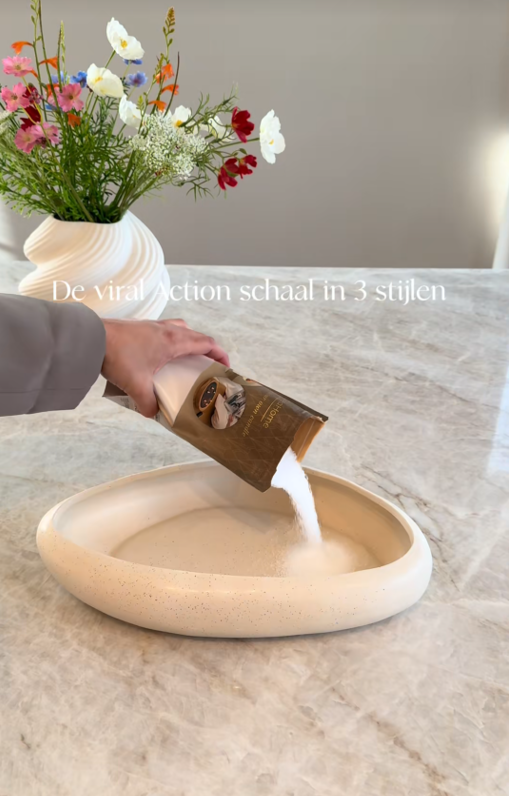 Wat deze schaal zo geliefd maakt, is z’n flexibiliteit. Online laten Action-fans zien hoe ze de schaal vullen met fruit, waxinelichtjes of zelfs een salade – en elke keer krijgt hij weer een totaal andere look. Het is dus veel meer dan alleen decor; het is een multifunctioneel item dat je helemaal naar je eigen smaak kunt inzetten.